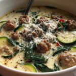 A rich and creamy keto Italian sausage soup packed with zucchini and spinach, ready in just 30 minutes.